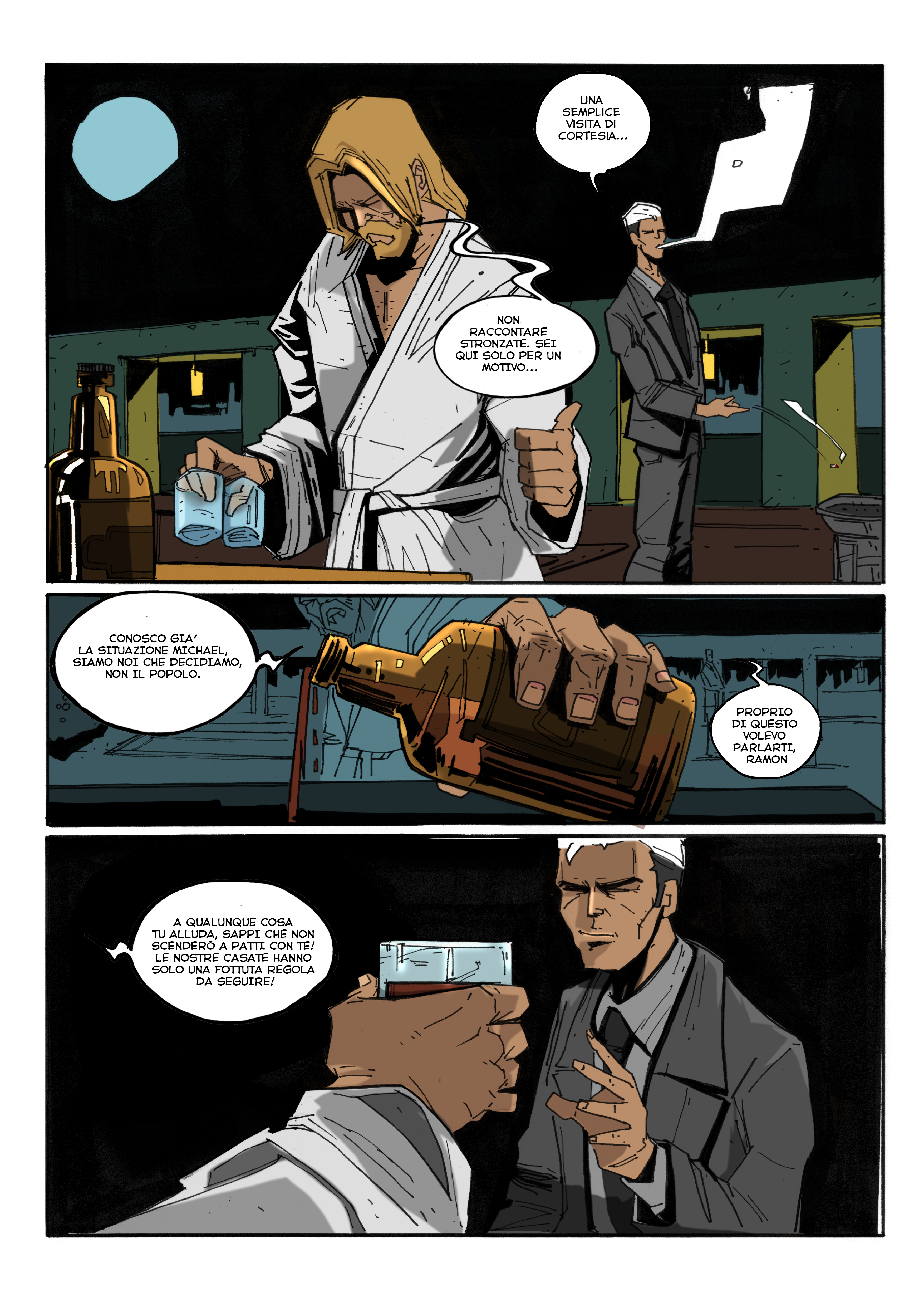 Lorenzo Nicoletti: Sono nato a Matera il 21 marzo del 1975. Dopo il diploma al liceo artistico nel ’94 ho frequentato un anno di accademia di belle arti a Firenze. L’anno seguente mi sono iscritto allo IED (Istituto Europeo di Design) di Milano, dove ho frequentato il corso triennale di Illustrazione. Subito dopo il diploma Allo IED (1999), ho lavorato come designer nell’azienda di famiglia che produce divani e complementi d’arredo. Nel 2007 ho partecipato a un concorso internazionale di design indetto da Rima Editrice, dal titolo “YOUNG e DESIGN”, ottenendo il secondo posto su circa 500 partecipanti, con un progetto di divano multifunzionale: JONATHAN. Nel 2008 la Rima Editrice mi ha invitato nuovamente a partecipare allo stesso concorso per giovani designer. Nel 2013 esce il mio primo libro a fumetti, pubblicato da una piccola casa editrice della provincia di Bari. Il libro dal titolo “Mimmo, il sogno dentro un sogno” è dedicato alla vita e alle opere di Domenico Modugno. Scritto e illustrato da me, Mimmo esce nelle librerie il 4 marzo con una presentazione ufficiale in Feltrinelli nella sede di Bari. L’anno seguente, nel 2014, pubblico “16 marzo 1978” un fumetto dedicato ai retroscena della vicenda Moro. Il libro è stato recensito da Maurizio Decollanz, giornalista e autore televisivo del programma di “Rebus questione di conoscenza”. A Maggio 2017 pubblico “IL GRANDE INGEGNO”, una graphic novel con tema “unione e moneta unica europea”e “BABY DEATH numero 1”edito da Prankster Comics. A Settembre 2018 esce“REBIRTH vol.1” edito da Prankster Comics e “Tutto tua madre”il nuovo video di J-Ax, concepito e creato da Luca Tartaglia, per il quale ho collaborato realizzando tutta la parte di animazione del video e l’illustrazione della copertina del singolo. Attualmente collaboro con vari sceneggiatori e lavoro come illustratore freelance.