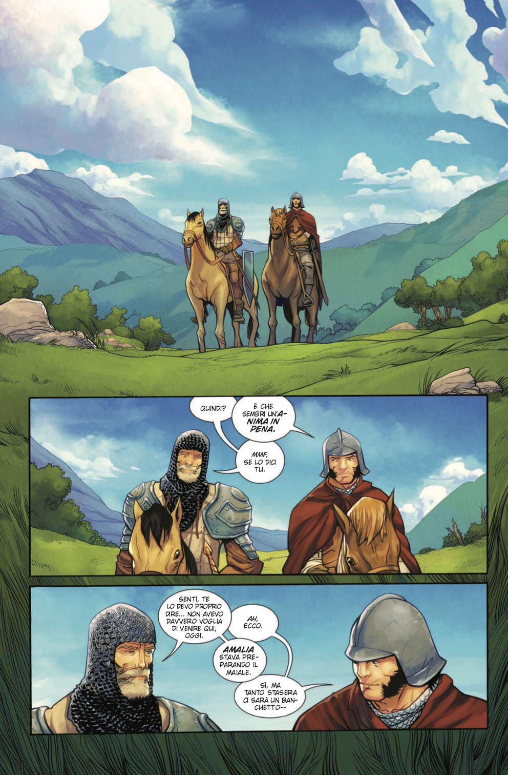 La trama imbastita da Max Landis parte da classiche premesse del genere fantasy, ma l’arrivo di Cyril spariglia le carte in tavola aprendo le porte del racconto alla fantascienza. La narrazione segue un ritmo vertiginoso che tiene il lettore incollato alle pagine del volume, oltre a dare spazio ad alcune interessanti sottotrame come quella del rapporto fraterno tra Bertwald e Ralphus. L’impostazione cinematografica di Landis è evidente nella scelta dei layout delle tavole, che alternano splash-pages e ampie vedute a griglie con nove, dodici o quindici vignette.