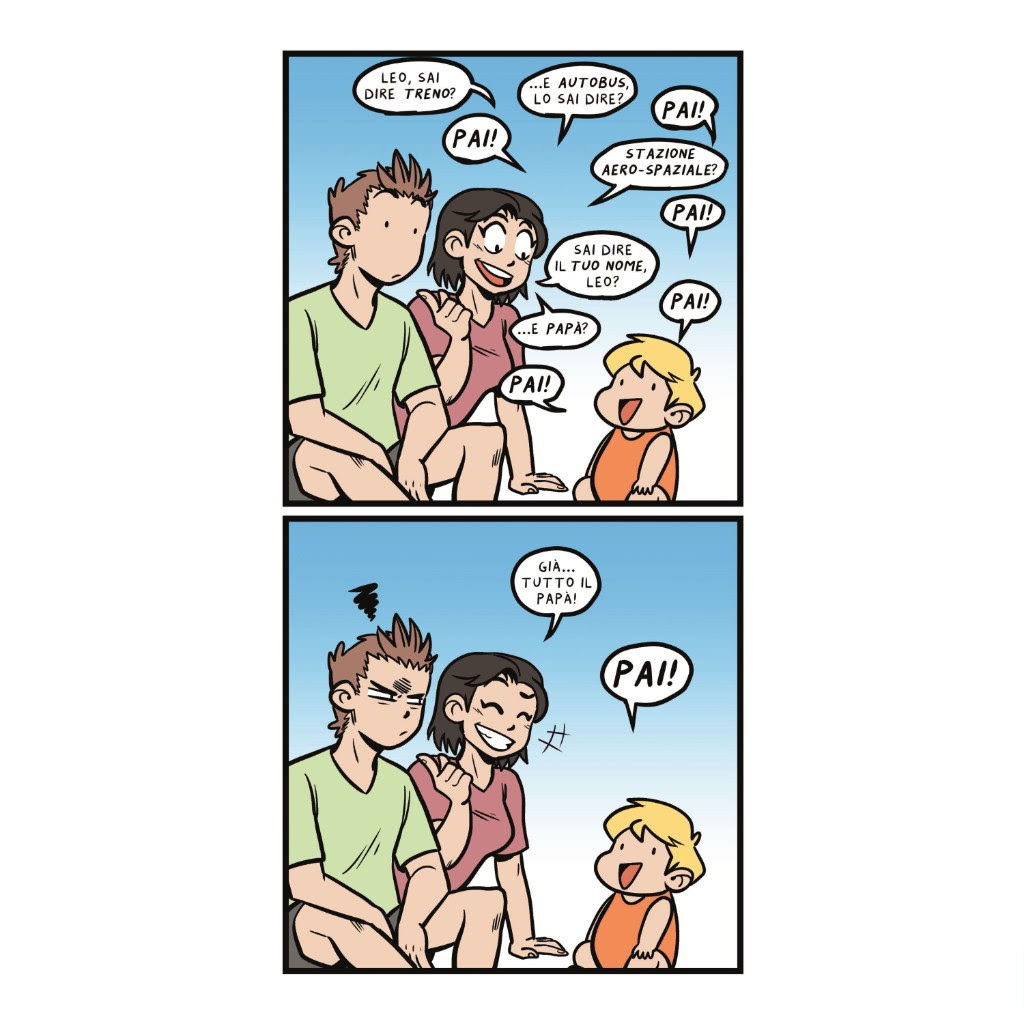 Dado spiega da dove è nato tutto questo: “Ho iniziato a disegnare queste strisce a tempo perso. Con un neonato in famiglia succedevano tante di quelle cose che, per deformazione professionale, tendevo a tradurre e pensare sotto forma di potenziali fumetti. Un giorno ho iniziato a tirare giù qualche striscia per davvero, mostrandola solo ai miei cari. Loro si divertivano a leggerle e io a farle, quindi ho pensato di metterle sui social, partendo dal mio profilo personale di Facebook, un pubblico più “contenuto”. Anche lì furono apprezzate molto, così le ho date “in pasto” a un pubblico maggiore e in pochi mesi hanno riscosso moltissimo successo. Sinceramente non mi aspettavo questa risposta dal pubblico, sapevo che erano divertenti, ma non pensavo così tanto da diventare virali. In poco tempo poi, le strisce sono diventate anche un bellissimo libro pubblicato da Shockdom. Sono molto contento di condividere la mia avventura di papà con tantissime altre persone… anche se quando mio figlio sarà grande probabilmente mi odierà per questo!”
