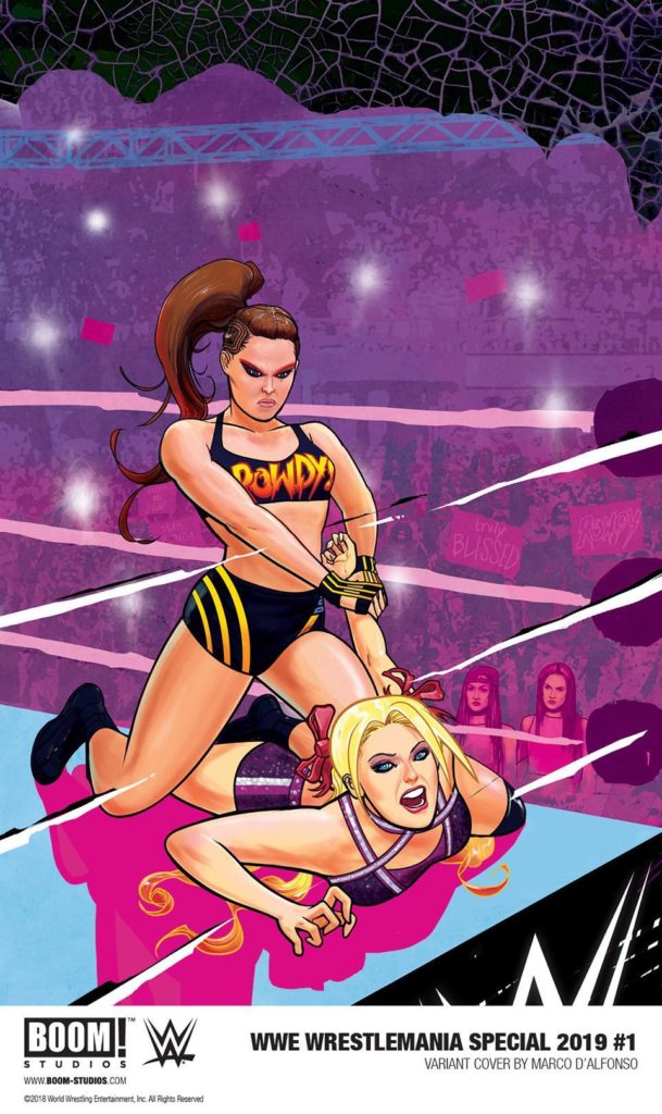 Per l’occasione la casa editrice USA BOOM! Studios ha deciso di pubblicare a marzo un albo speciale dedicato all’evento intitolato WWE WrestleMania 2019 Special #1. Un numero one-shot che vedrà il team creativo composto da Bill Hanstock e dal disegnatore Hyeonjin Kim, la trama avrà momenti dedicati a storie ambientate nella golden age della WWE, l’epoca di vere e proprie leggende del roster come Ric Flair, Shawn Michaels e i Brothers of Destruction – ma anche spazi dedicati al presente del brand, con superstar quali Charlotte Flair e la Campionessa del roster femminile di SmackDown, Asuka.