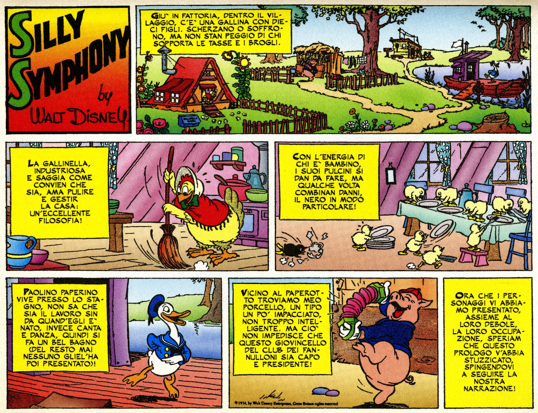 Il primo editore è il fiorentino Nerbini, ma è con Mondadori – complice anche l’ amicizia fra Arnoldo Mondadori e Walt Disney – che il fenomeno editoriale assume una dimensione rilevante. La prima innovazione di prodotto italiana è del 1949. La veste editoriale si trasforma e passa dal “lenzuolone” (grandi pagine, simili al “Corriere dei Piccoli”) al formato “pocket” che conosciamo oggi. Mondadori capisce rapidamente che per mantenere alta la qualità di queste riviste e vivo l’interesse dei lettori, va creata una squadra di disegnatori capaci di produrre storie a ritmi elevati. Nasce così la scuola italiana degli autori Disney, che dagli inizi con artisti come Guido Martina, Giuseppe Perego, Giovan Battista Carpi, Pier Lorenzo De Vita, Romano Scarpa e Luciano Bottaro arriva fino ai giorni nostri, con centinaia di autori coinvolti in una produzione di alta qualità esportata in ogni parte del mondo.