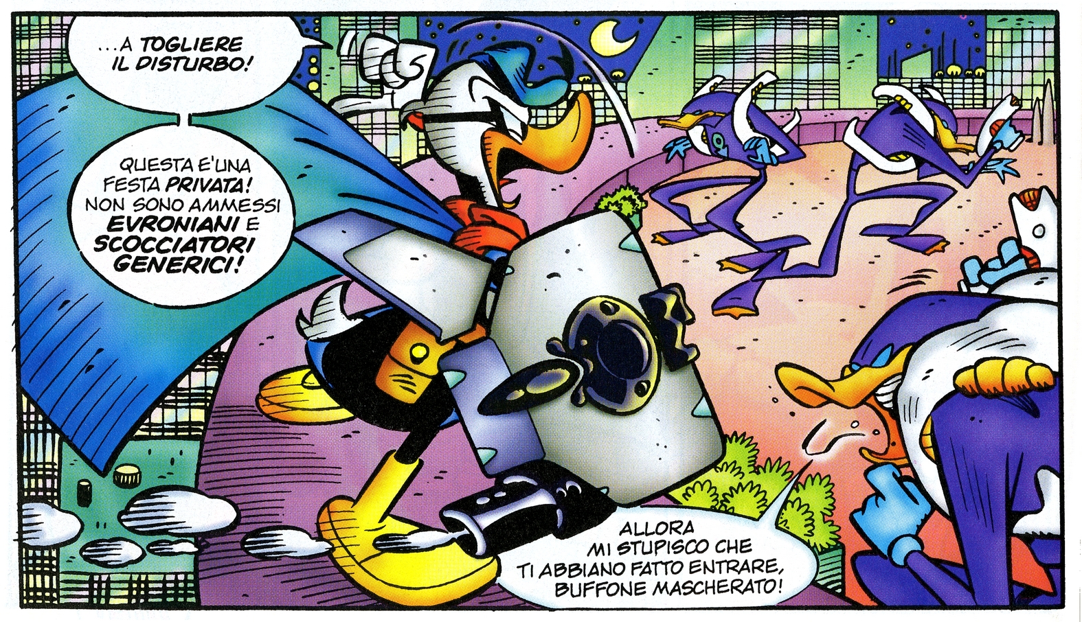 Spesso vittima dello zio Paperone e del cugino Gastone, Paperino è stato per anni relegato al ruolo di perdente. Negli anni però gli autori italiani hanno voluto raccontare un’altra storia e hanno dato vita a un Paperino, eroico, romantico, e avventuroso. Allora nascono storie in cui Paperino fa il guerriero samurai, oppure il cow-boy; viene cioè allontanato dall’ambiente in cui era nato – Paperopoli – ma il tutto senza mutare il suo profilo psicologico, autentico dogma della casa madre. È in questo filone che si iscrivono le celebri “parodie Disney”, come per esempio Guerra e pace disegnata da Carpi. Gli italiani fanno storie più lunghe rispetto a quelle americane – che sono spesso più brevi e piene di gag – giocano sull’ambientazione, sviluppano la narrazione e soprattutto fanno evolvere i profili dei personaggi.