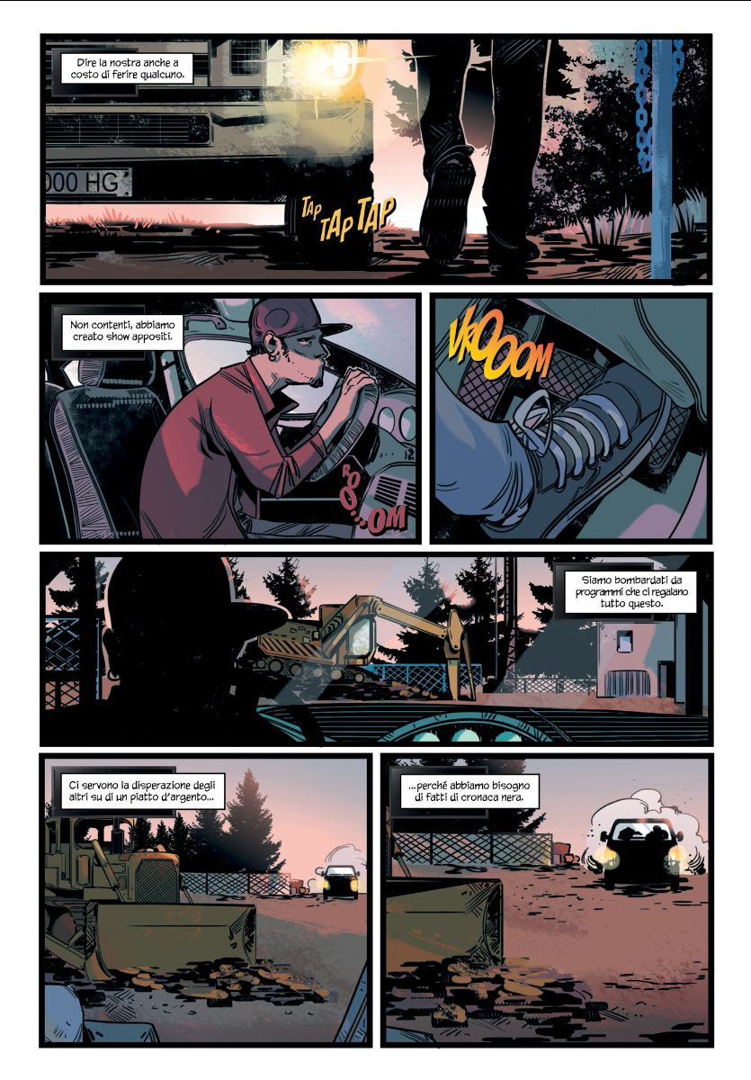 Chiara Zulian, responsabile editoriale per Shockdom, aggiunge: “Una rappresentazione lucida e attenta dell’attuale società, dove il mondo dei media viene analizzato senza edulcorazioni e il meccanismo perverso che gira attorno ai maggiori casi di cronaca nera viene smascherato punto per punto. Un crudele e apparentemente insensato omicidio diventa così un banchetto per tutti gli avvoltoi di un mondo che ha perduto la propria umanità, sacrificandola al dio dell’audience, del denaro e della visibilità, in una realtà in cui “essere famosi” assume un significato particolarmente sinistro.”