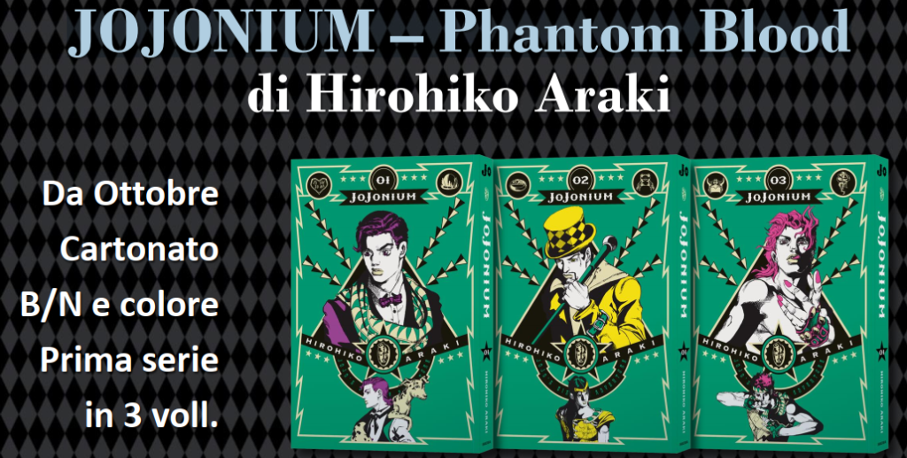 “Per festeggiare l’imminente arrivo in Italia del maestro Hirohiko Araki, torna il primo, leggendario capitolo della saga transgenerazionale più bizzarra e famosa della storia del manga in una nuovissima edizione deluxe che farà