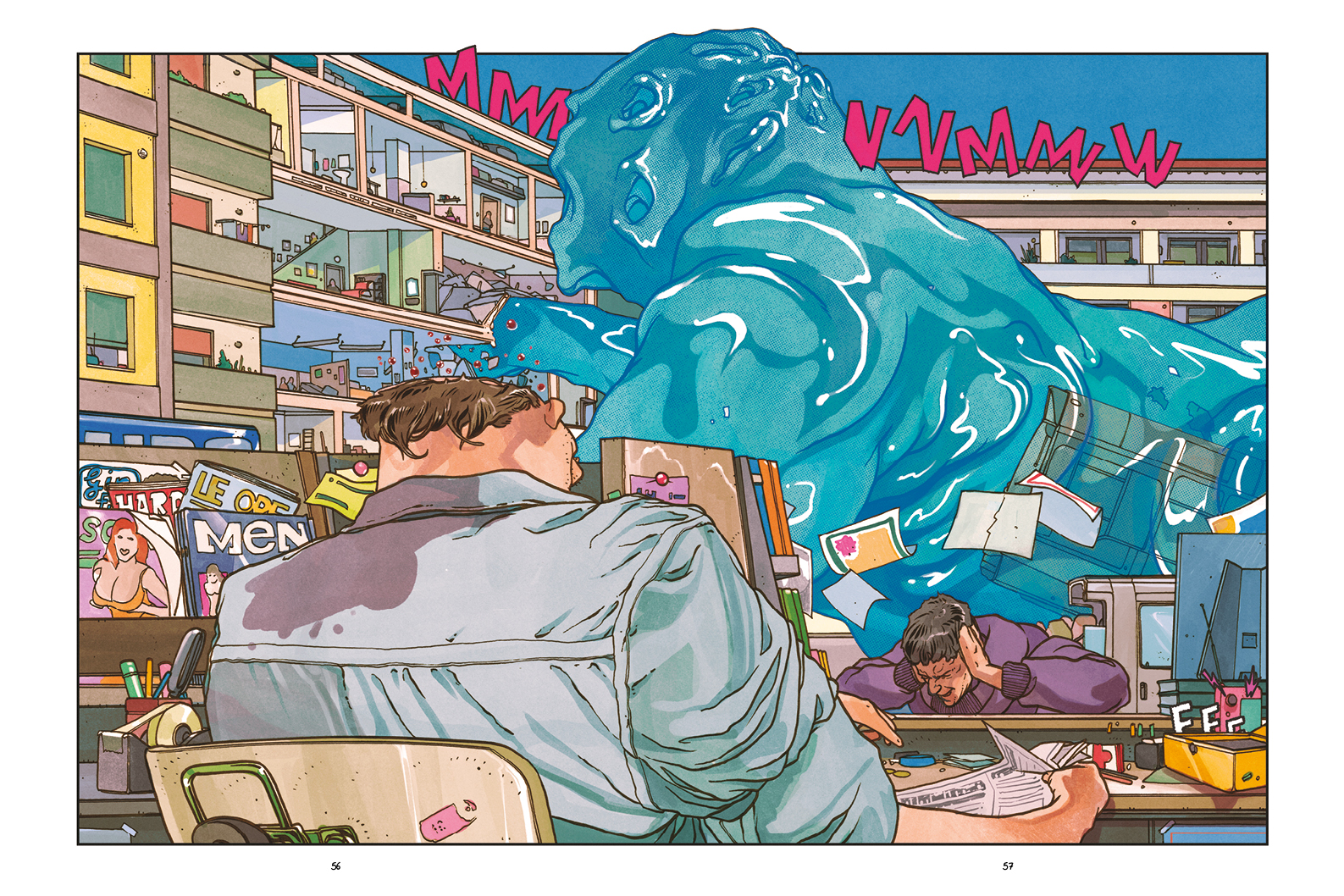 A questa atmosfera da fine mondo, Tommy Gun ha accostato dei colori ultra pop e uno stile che richiama il fumetto popolare dei decenni scorsi. Da questo contrasto nasce un horror-distopico pieno di luce, un’esperienza visiva unica, un libro che è l’espressione pura delle paure più ataviche della contemporaneità.