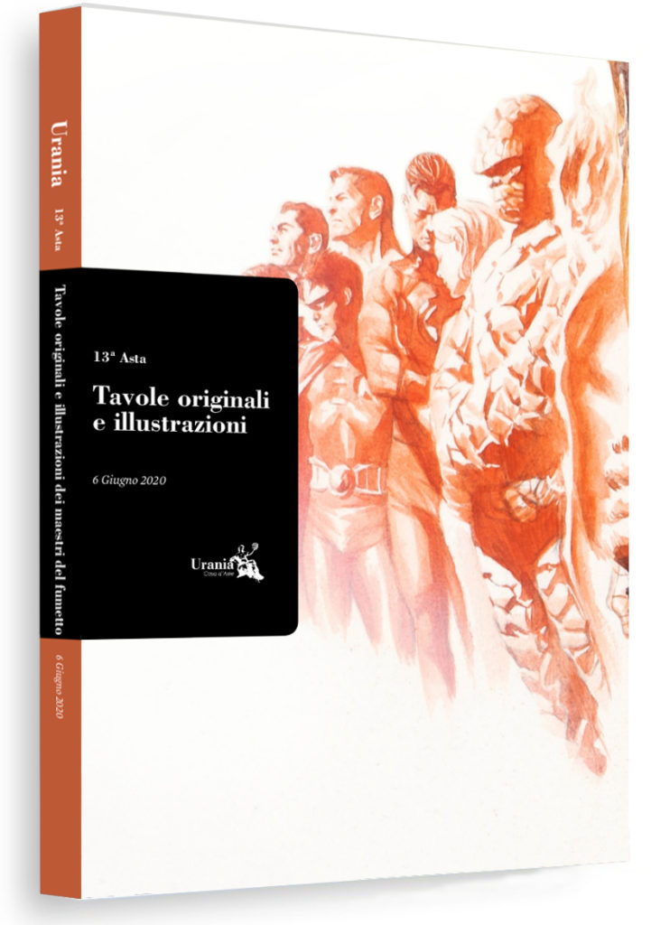 La tredicesima asta di Urania Casa d’Aste propone, come ormai da tradizione, due cataloghi per un totale di 443 disegni originali. Il primo è dedicato a Guido Buzzelli, grande fumettista, illustratore e pittore; il secondo ai maestri del fumetto internazionale.