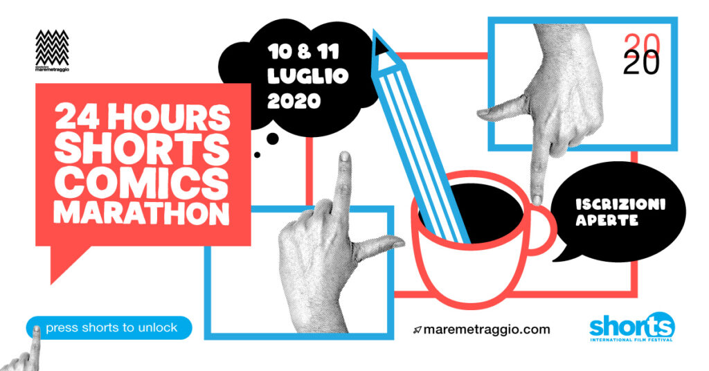 Un contest gratuito dedicato a disegnatori di ogni età che vorranno cimentarsi in una vera e propria maratona artistica durante la quale, in sole 24 ore, dovranno realizzare un cortometraggio a fumetti di almeno 4 tavole inchiostrate e/o colorate, ciascuna contenente una vignetta di dimensione quadrata. Il fumetto vincitore verrà poi pubblicato e distribuito gratuitamente, prima sui canali social di ShorTS International Film Festival e poi su carta all’interno di un volume che verrà distribuito gratuitamente.