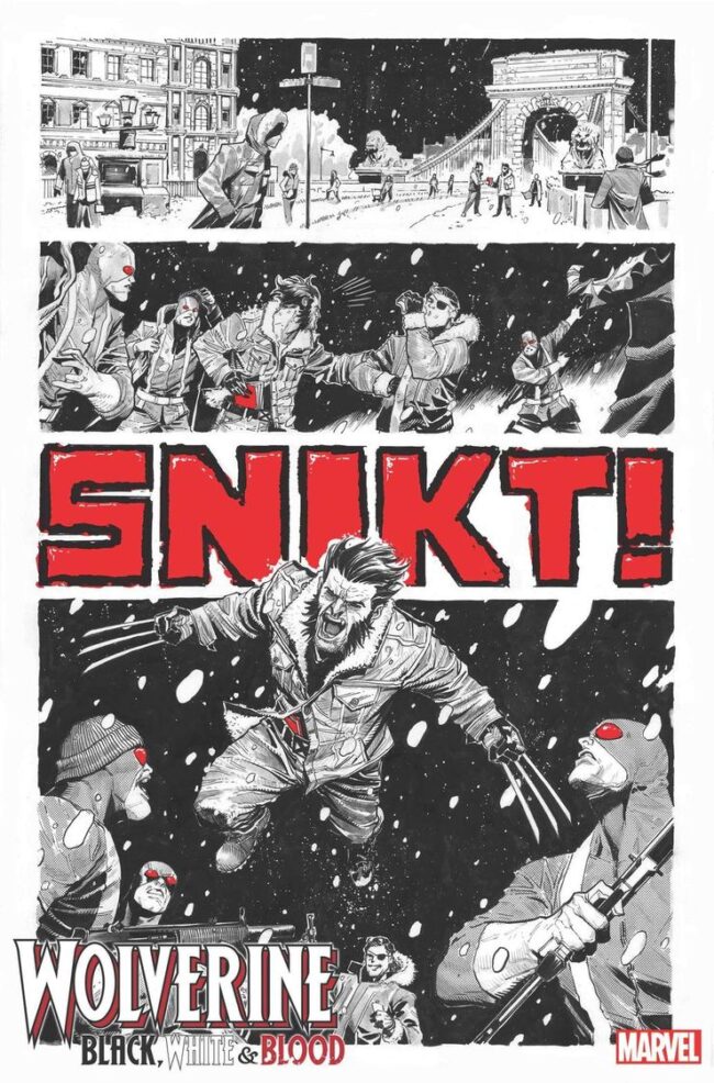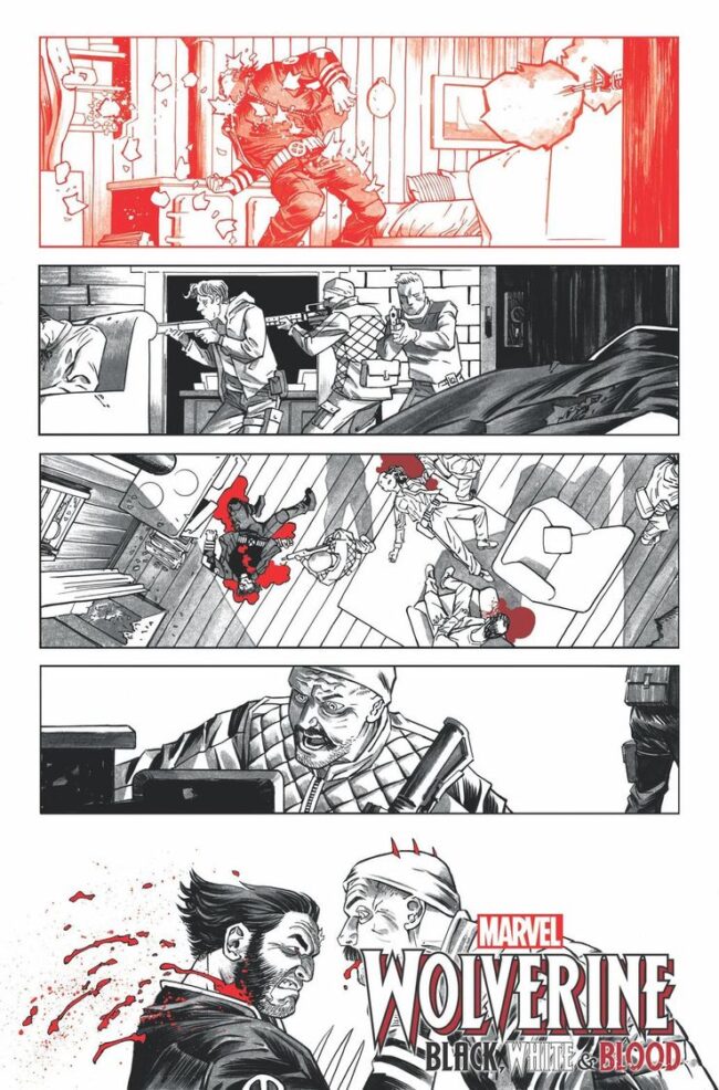 Il primo numero di Wolverine: Black, White & Blood vedrà tra gli autori Gerry Duggan e Adam Kubert per la prima storia, un rimando al progetto Arma X; Matthew Rosenberg e Joshua Cassara per la seconda storia, con Nick Fury e Hydra; e lo scrittore/disegnatore Declan Shalvey per la terza storia.