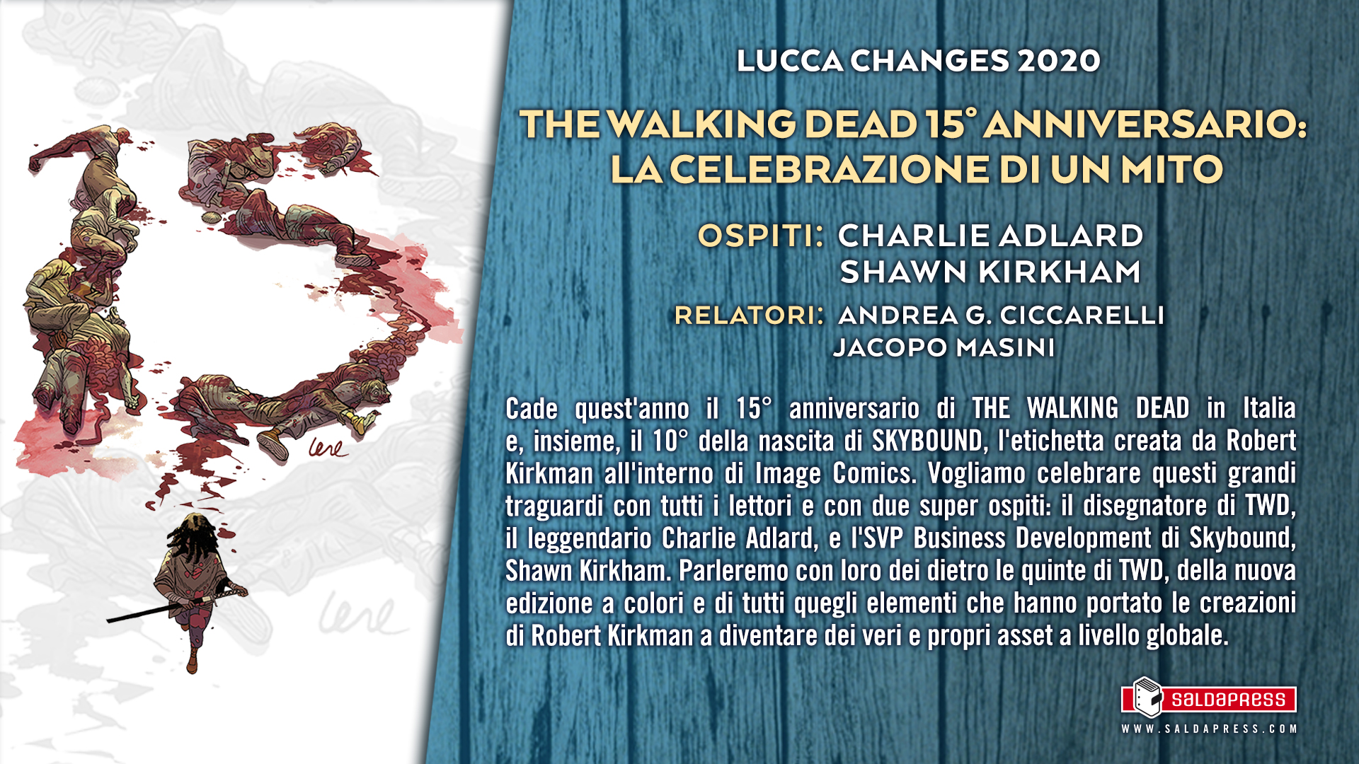 SaldaPress celebra questi grandi traguardi con tutti i lettori e con due super ospiti: il disegnatore di TWD, il leggendario Charlie Adlard, e l’SVP Business Development di Skybound, Shawn Kirkham.