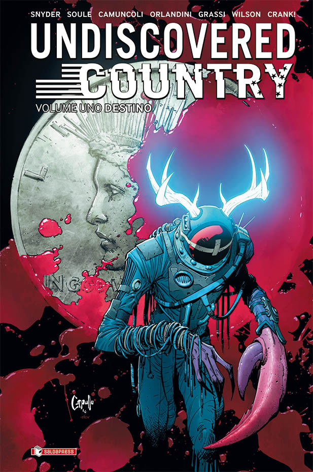 Considerata l’eccezionale importanza della serie, saldaPress ha scelto di pubblicare UNDISCOVERED COUNTRY anche in triplice edizione variant. Un’iniziativa molto speciale, che coinvolge altre realtà dell’editoria italiana. Si parte da un’edizione variant exclusive con slipcase e contenuti speciali in tiratura limitata a 1000 copie numerate, disponibile in fumetteria e nello shop online del sito saldapress.com (euro 29,90) e si prosegue con tre edizioni variant limitate a 500 copie numerate: due destinate ai distributori Manicomix e Starshop (euro 21) che potranno essere ordinate dalle fumetterie, e una destinata ad Amazon (euro 21).