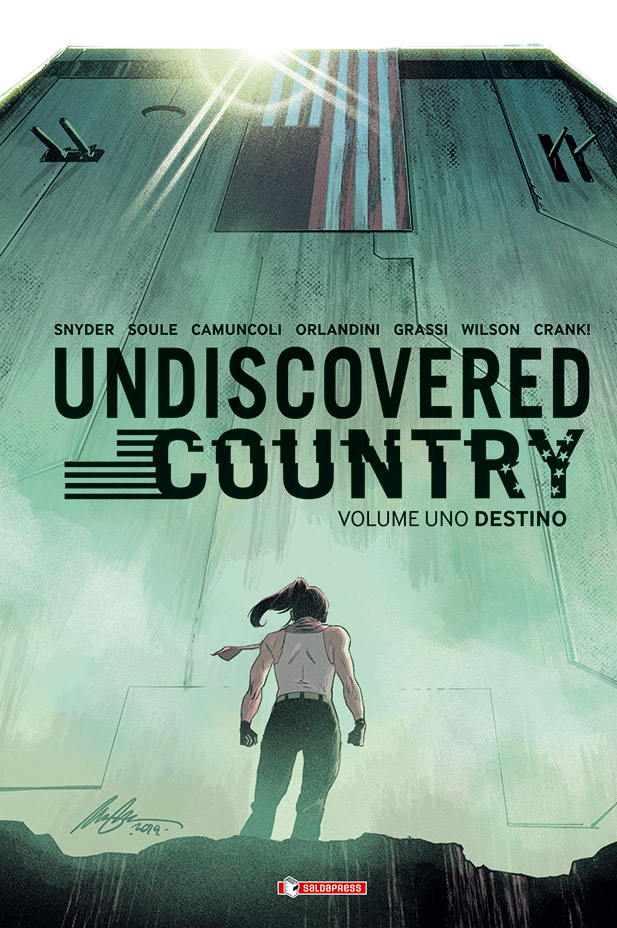 Considerata l’eccezionale importanza della serie, saldaPress ha scelto di pubblicare UNDISCOVERED COUNTRY anche in triplice edizione variant. Un’iniziativa molto speciale, che coinvolge altre realtà dell’editoria italiana. Si parte da un’edizione variant exclusive con slipcase e contenuti speciali in tiratura limitata a 1000 copie numerate, disponibile in fumetteria e nello shop online del sito saldapress.com (euro 29,90) e si prosegue con tre edizioni variant limitate a 500 copie numerate: due destinate ai distributori Manicomix e Starshop (euro 21) che potranno essere ordinate dalle fumetterie, e una destinata ad Amazon (euro 21).