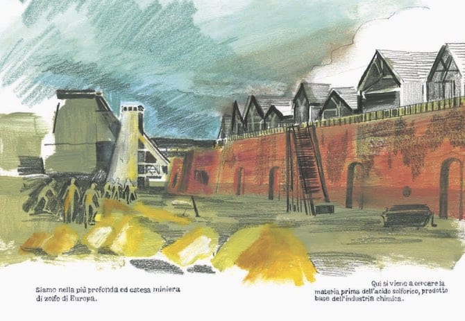 96 pagine per raccontare una storia realmente accaduta, che usa le bellissime illustrazioni della Rocchi per far arrivare in maniera chiara e semplice le parole scritte dall’autore del libro Grammatica della fantasia riportandoci all’interno di quella miniera e di quella protesta, facendoci sentire la durezza della risalita verso la luce e della camminata di Maria, al solo scopo di potersi vedere.