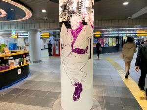 I personaggi di Jujutsu Kaisen sono inoltre stati dipinti sui pilastri della stazione.