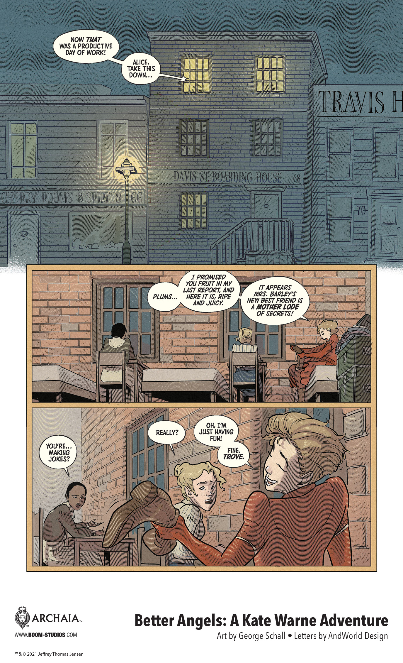 BOOM! Studios ha annunciato il nuovo o graphic novel  BETTER ANGELS: A KATE WARNE ADVENTURE realizzato dallo scrittore vincitore di Emmy e Eisner Award Jeff Jensen e dall’artista George Schall. Un Fumetto ispirato  alla storia vera di Kate Warne, la prima detective donna d’America, e al suo singolare successo: sventare un complotto dei confederati per uccidere Abraham Lincoln.