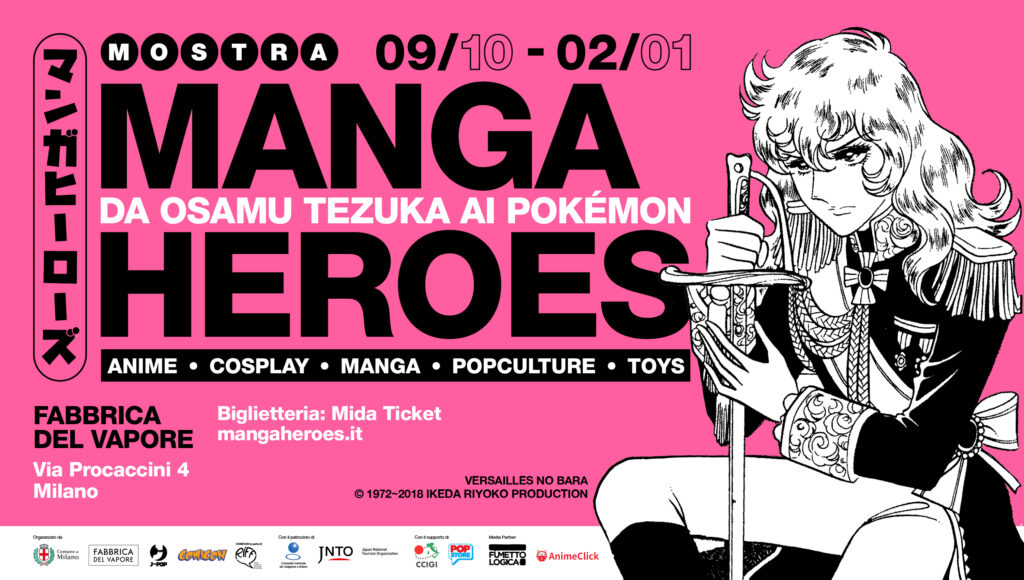 Dal 9 ottobre 2021 al 2 gennaio 2022 la Fabbrica del Vapore a Milano presenta all’interno dello Spazio Ex Cisterne la mostra Manga Heroes. Da Tezuka ai Pokémon, a cura di Jacopo C. Buranelli, un percorso espositivo dedicato all’arte dei Manga, alla sua evoluzione e ai suoi eroi che si compone di tavole, oggetti e riproduzioni con le quali il visitatore potrà interagire per immergersi nella cultura giapponese.