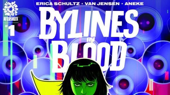 Un profetico thriller neo-noir con colpi di scena inaspettati ad ogni svolta, BYLINES IN BLOOD è co-creato dalla scrittrice nominata al Ringo Award Erica Schultz e dallo scrittore di fumetti ed ex giornalista criminale Van Jensen con i disegni di Aneke