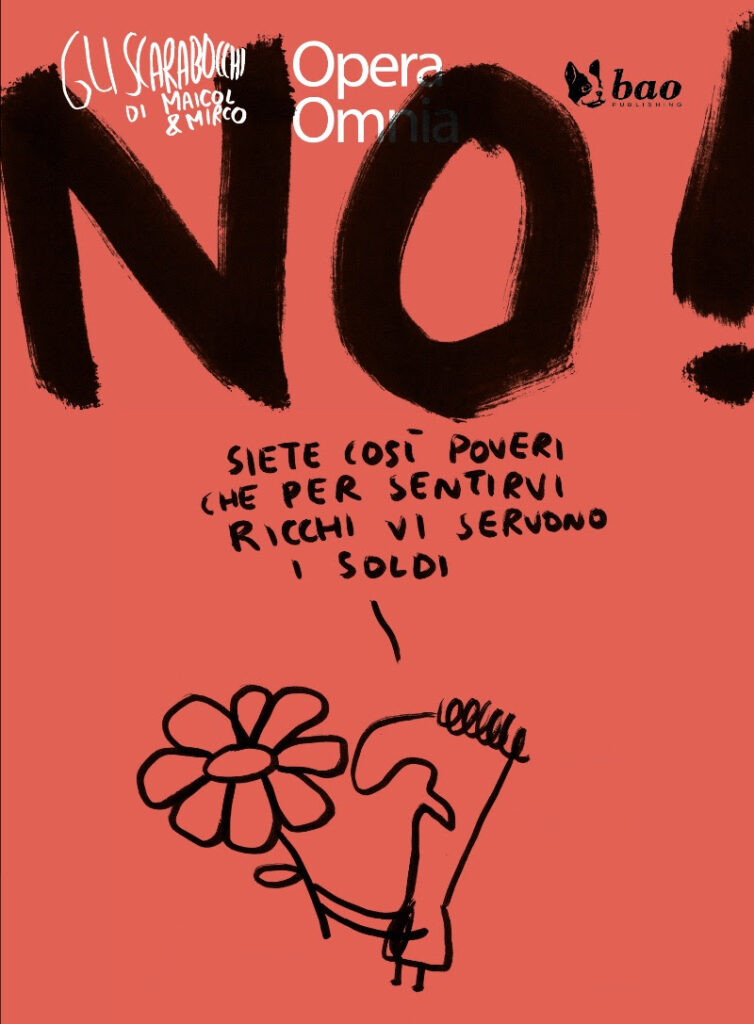 BAO Publishing è orgogliosa di annunciare l’uscita in libreria di NO! il quinto volume della raccolta integrale dell’Opera Omnia degli Scarabocchi di Maicol & Mirco, un fenomeno unico nel suo genere, che sfugge ai generi e alle definizioni.