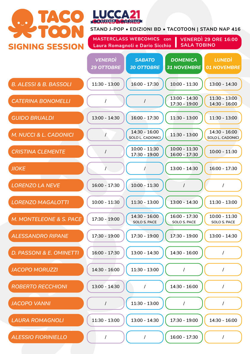 Gli eventi TacoToon a Lucca Comics and Games 2021