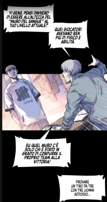 Questo Streetball Arena – almeno per ora – non ci ha dato l’impressione di potere (e nemmeno di volere in realtà) giocare nello stesso campo dell’illustre avversario, ma si è messo in luce dal punto di vista grafico sfruttando al meglio le potenzialità della lettura mobile. Lo scrolling in verticale, unito a uno stile che strizza l’occhio al mondo degli anime, sembra riuscire a dare un ottimo dinamismo alle azioni in campo, soprattutto per ora che il protagonista e gli altri personaggi sembrano essere molto egoisti nello sport.