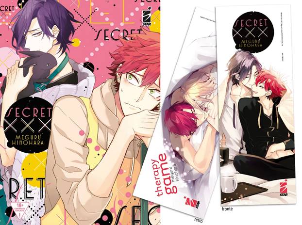 Tutto questo, e molto di più, è SECRET XXX, in uscita il 19 gennaio nella collana Queer. Per festeggiare l’arrivo della sensei Hinohara Meguru in Italia, in allegato al volume ci sarà anche un gadget in omaggio, ovvero un esclusivo segnalibro con due illustrazioni inedite della Sensei: da un lato SECRET XXX e dall’altro THERAPY GAME.