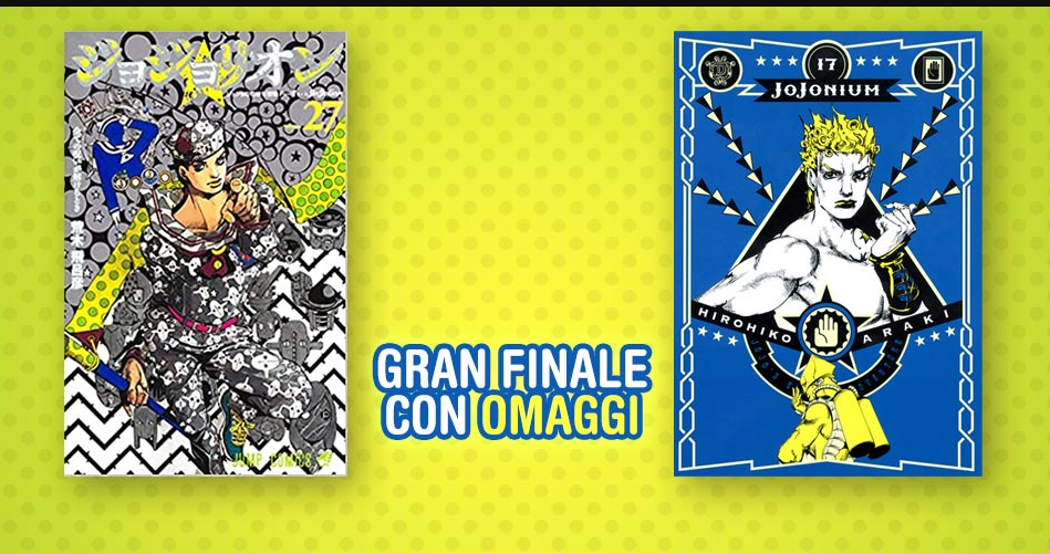 Nei prossimi mesi si concluderanno la lussuosissima JOJONIUM – che in Italia ha visto la luce nel 2019 – e JOJOLION – l’ottava serie de LE BIZZARRE AVVENTURE DI JOJO – del maestro Hirohiko Araki. In occasione dell’uscita dei due volumi finali, rispettivamente il numero 17 e il numero 27, ci saranno alcune sorprese in regalo per tutti i lettori appassionati del fantastico universo creato dal geniale Sensei.