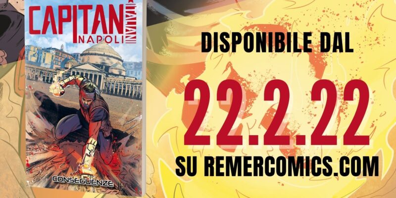 Dopo la trionfale campagna di crowdfunding #Eroinsieme (https://www.indiegogo.com/projects/capitan-napoli-vol-2#/), il secondo volume di Capitan Napoli diventa disponibile per tutti. Remer Comics ha scelto una data che potesse far sentire a tutti che Capitan Napoli è tornato. Oggi 2 febbraio 2022 (appunto 22.2.22) arriva disponibile sul sito della casa editrice, su tutte le piattaforme online (Amazon, ecc.) e presso i distributori (Manicomix, Starshop e Terminal Video) il nuovo albo a fumetti del giovane eroe partenopeo.