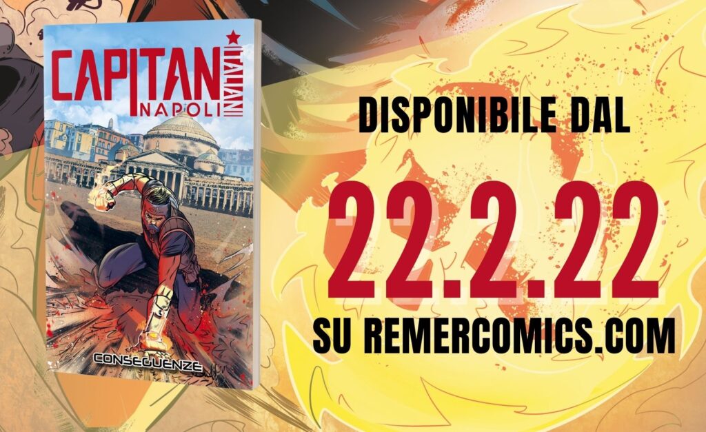Dopo la trionfale campagna di crowdfunding #Eroinsieme (https://www.indiegogo.com/projects/capitan-napoli-vol-2#/), il secondo volume di Capitan Napoli diventa disponibile per tutti. Remer Comics ha scelto una data che potesse far sentire a tutti che Capitan Napoli è tornato. Oggi 2 febbraio 2022 (appunto 22.2.22) arriva disponibile sul sito della casa editrice, su tutte le piattaforme online (Amazon, ecc.) e presso i distributori (Manicomix, Starshop e Terminal Video) il nuovo albo a fumetti del giovane eroe partenopeo.