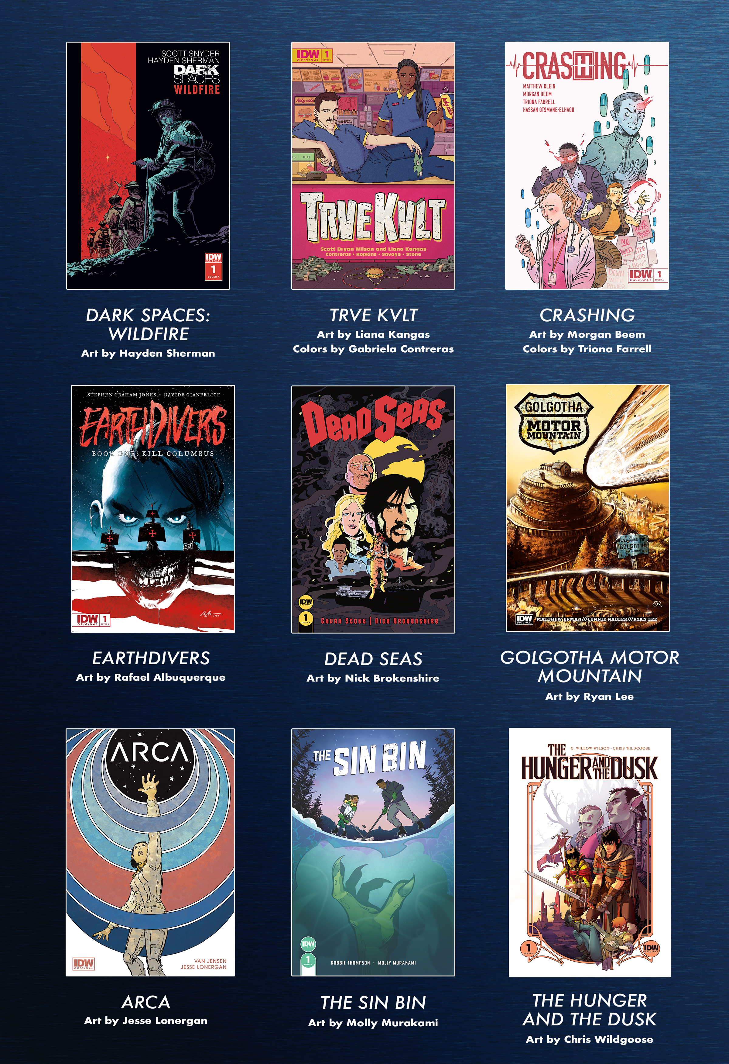 A partire da Dark Spaces: Wildfire di Scott Snyder a luglio, IDW pubblicherà mensilmente nuovi progetti originali che riflettono un’ampia selezione di generi: thriller poliziesco, horror soprannaturale, fantascienza, fantasy epico e altri ancora.