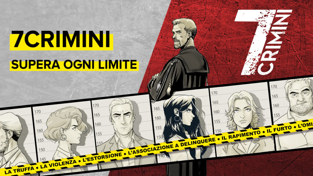 7CRIMINI è una serie che unisce la passione per il crime alla conoscenza del diritto. Nati dalla penna di una sceneggiatrice, Katja Centomo, e di un avvocato, Emanuele Sciarretta, sette graphic novel guidano il lettore alla scoperta ogni volta di un crimine diverso che, nella parte finale del volume, viene indagato e approfondito da giuristi esperti e professionisti del foro. A dare un volto al protagonista di 7CRIMINI è la mano di Daniele Caluri, fumettista di grande esperienza e indiscusso talento del panorama artistico italiano. Le copertine, invece, sono a cura di Marco Caselli, disegnatore anche del primo episodio della serie. A disegnare le storie alcuni dei nomi più conosciuti e apprezzati del mondo del fumetto come, oltre a Daniele Caluri, Giorgio Pontrelli, Luca Enoch, Bruno Cannucciari e molti altri.