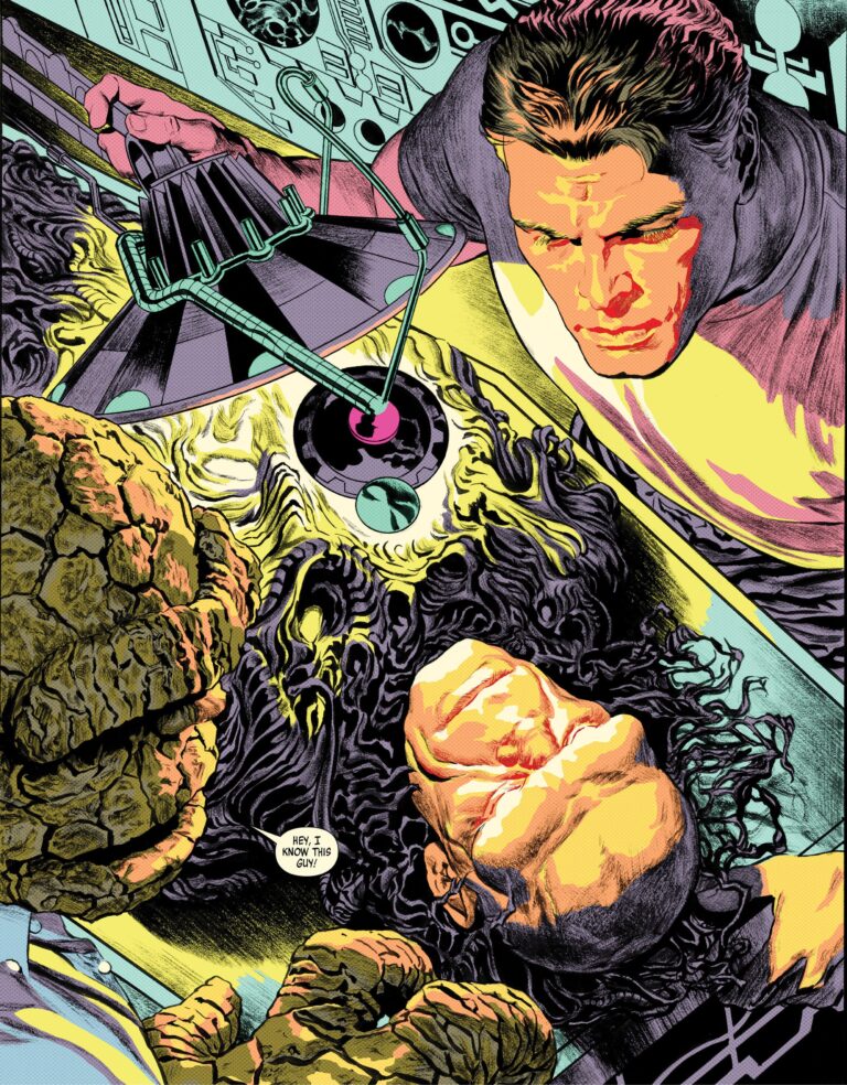 Per quanto riguarda la storia, si tratta di una lettura estremamente rapida – anche perchè le pagine sono poche- e autoconclusiva, adatta a una operazione che vuole omaggiare il quartetto della casa delle idee e due big del passato, che arriva (più negli USA che da noi) in un momento perfetto, dove la prima famiglia Marvel si appresta a essere rilanciata nuovamente con un nuovo team creativo.