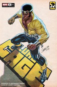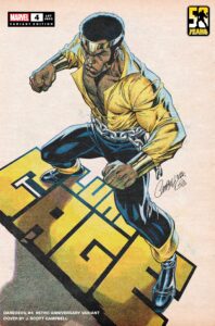 Nel corso dell’ultimo anno, l’artista superstar J. Scott Campbell ha aiutato la Marvel Comics a onorare gli anniversari importanti di alcune delle più grandi icone dei fumetti della casa delle idee, tra cui Hulk, Thor, Spider-Man e Ant-Man! La prossima sarà una copertina per DAREDEVIL #4 di ottobre per omaggiare Luke Cage che celebra i 50 elettrizzanti anni di difesa delle strade dell’Universo Marvel! Lo straordinario pezzo raffigura Luke nel suo iconico costume di Power Man e, come tutte le copertine dell’anniversario di Campbell, sarà disponibile anche in una versione retrò