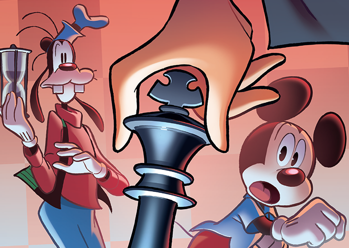 Gli scacchi sono anche protagonisti di Scacco matto a Topolino, storia in 4 episodi al via su Topolino 3487, scritta da Giovanni di Gregorio e con i disegni di Ottavio Panaro, una “partita” davvero molto sfidante che lascerà tutti i lettori con il fiato sospeso. Il Commissario Basettoni e Topolino avranno a che fare con un misterioso criminale che è un abile giocatore di scacchi. Per fronteggiarlo dovranno mettere in atto strategie vincenti, essere molto concentrati e avvalersi di tanta memoria, proprio come quando si gioca una vera partita. Quale sarà la loro prossima mossa?