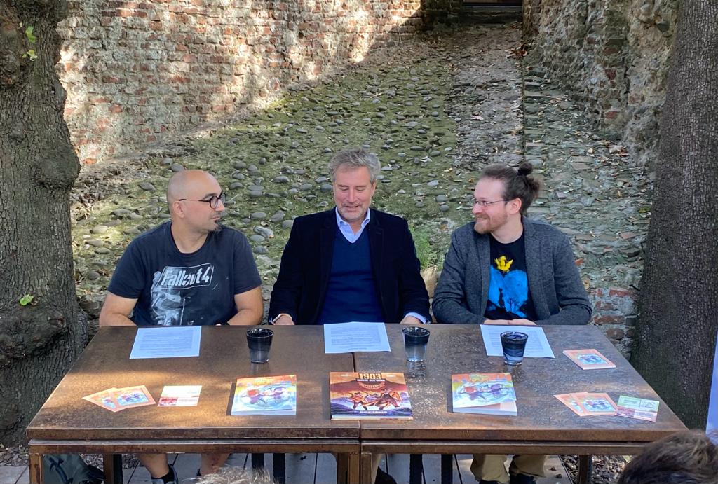 Si chiama Rider Comics la prima casa editrice lucchese dedicata ai fumetti. Nella città che ospita una delle più importanti fiere internazionali dedicate al mondo dei comics, il sogno di Antonio De Rosa diventa realtà e a pochi giorni dall’inizio di Lucca Comics&Games è stato presentato al pubblico e alla città con una conferenza stampa a cui hanno partecipato il sindaco Mario Pardini, l’editore De Rosa e il disegnatore Riccardo Pieruccini.