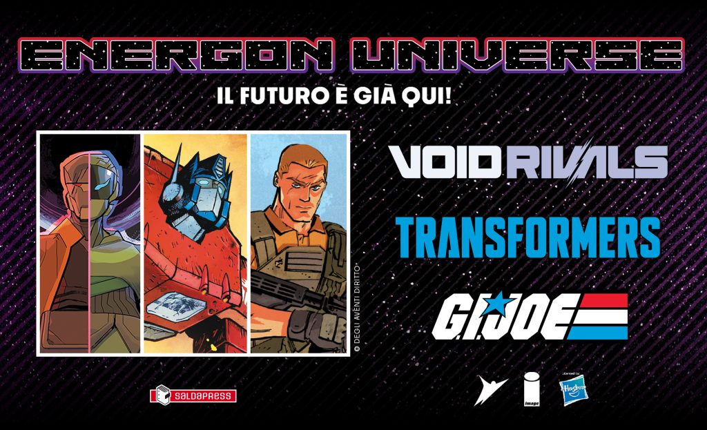 More than meets the eye! SaldaPress annuncia un importante ampliamento del catalogo della casa editrice con l’acquisizione dei diritti esclusivi di pubblicazione per l’Italia di Energon Universe, l’universo condiviso targato Skybound su licenza di Hasbro, con protagonisti i celebri personaggi dei media franchise Transformers e G.I. Joe. Insieme a loro, quelli di Void Rivals, la nuova serie originale disegnata da Lorenzo de Felici e scritta da Robert Kirkman, alla guida dell’intero progetto Energon Universe.
