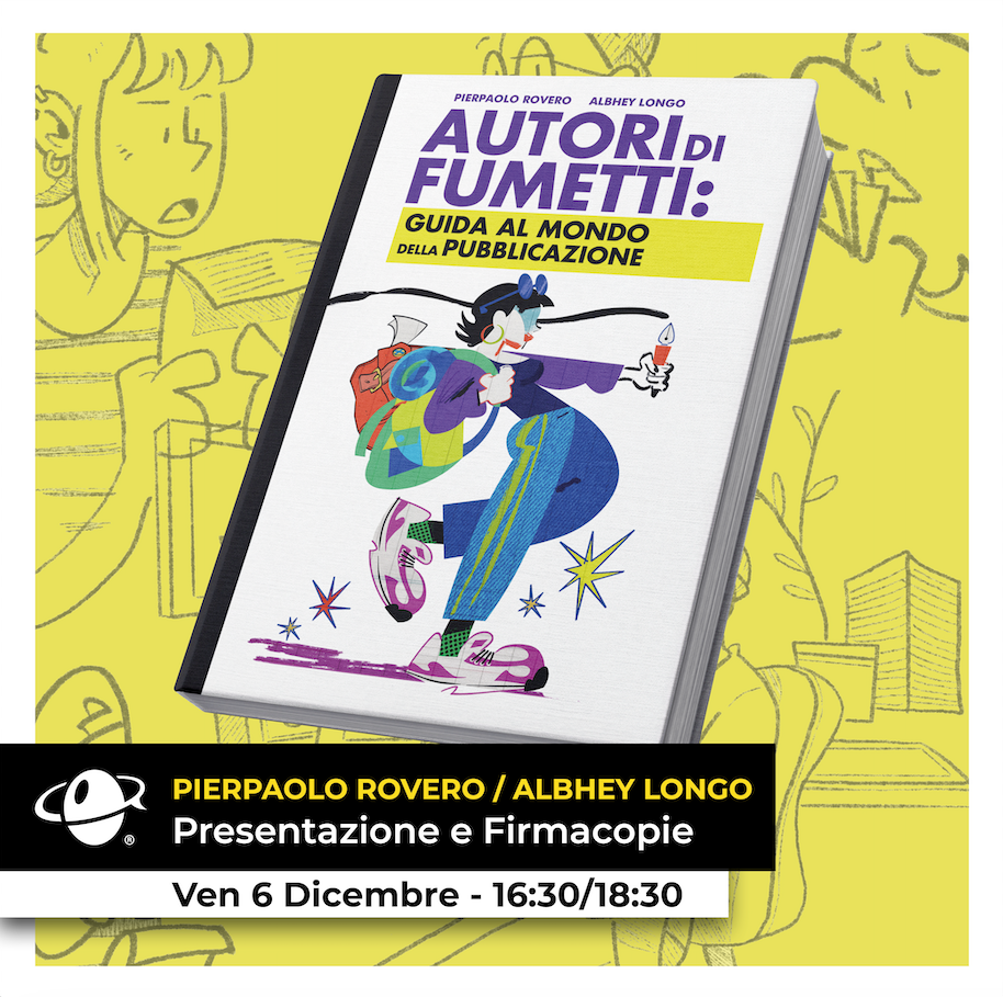 Proprio per questo SCUOLA INTERNAZIONALE DI COMICS di Torino ha organizzato per venerdì 6 dicembre dalle 16,30 alle 18,30 la presentazione di AUTORI DI FUMETTI: GUIDA AL MONDO DELLA PUBBLICAZIONE, un manuale scritto e disegnato da Pierpaolo Rovero e AlbHey Longo, che hanno unito le forze per dare una mano a aspiranti autrici e autori, non necessariamente alle prime armi.