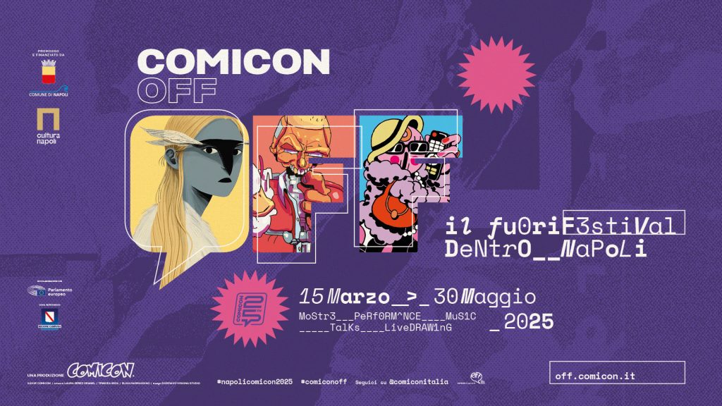 L’edizione 2025 segna un’importante espansione della rassegna, promossa e finanziata dal Comune di Napoli. Quest’anno COMIC(ON)OFF coinvolgerà tutte le municipalità e nuovi spazi culturali e artistici recentemente resi fruibili.