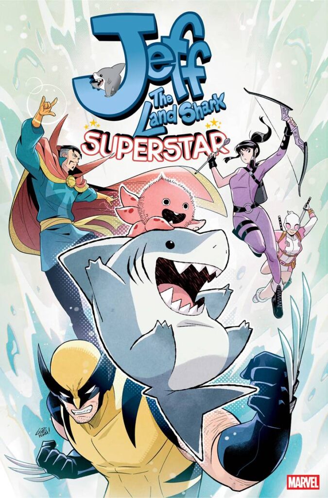 La crescente popolarità di Jeff the Land Shark lo ha trasformato nel bersaglio perfetto del megalomane e interdimensionale magnate della televisione Marvel, MOJO! Il famigerato villain degli X-Men è pronto a catturare Jeff per la sua avventura più eccitante e pericolosa di sempre in JEFF THE LAND SHARK: SUPERSTAR, una nuovissima miniserie dal team creativo di ritorno composto da Kelly Thompson e Tokitokoro.